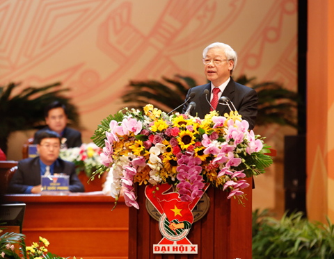 | Генеральный секретарь ЦК КПВ Нгуен Фу Чонг выступает на съезде. Фото: cpv.org.vn/ Minh Chau |