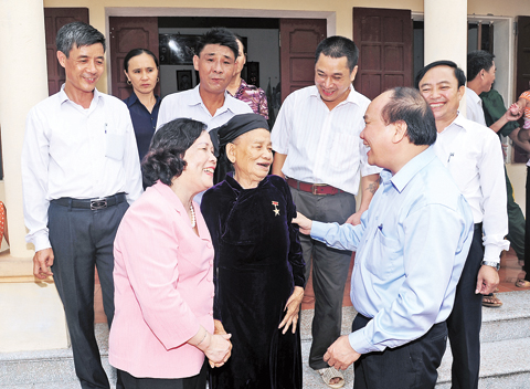 | Премьер-министр СРВ Нгуен Суан Фук и министр по вопросам труда, инвалидов войны и социального обеспечения Фам Тхи Хай Чуен наносят визит матери-героине Вьетнама Нгуен Тхи Кинь в общине Диньчи провинции Бакзянг. Фото: nhandan.com.vn |
