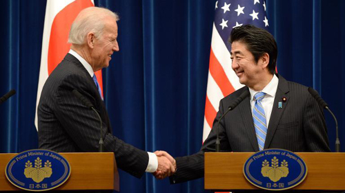 | Вице-президент США Джозеф Байден и премьер-министр Японии Синдзо Абэ. Фото: AFP |
