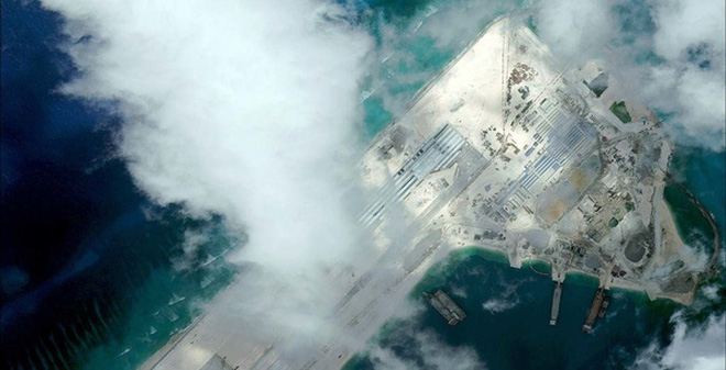 | Незаконно оккупированный Китаем риф Файери Кросс в районе вьетнамского архипелага Чыонгша (Спратли). Фото: CSIS |