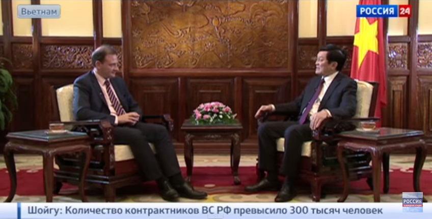 | Президент Вьетнама Чыонг Тан Шанг даёт интервью телеканалу Россия 24. Скриншот экрана |