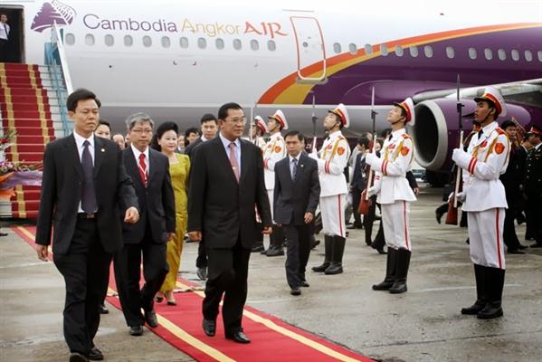 (VOVworld) - По приглашению премьер-министра Вьетнама Нгуен Суан Фука, делегация правительства Королевства Камбоджа во главе с премьер-министром Самдек Акка Моха Сена Падей Течо Хун Сеном находится во Вьетнаме с официальным визитом 20 и 21 декабря. Нынешний визит подтверждает решимость руководителей обеих стран непрерывно укреплять добрососедство и традиционную дружбу, а также расширять всеобъемлющее сотрудничество между Вьетнамом и Камбоджей.