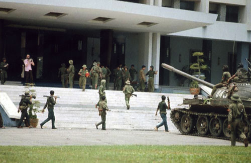 | Танк Вьетнамской народной армии входит во Дворец независимости в Сайгоне, 30 апреля 1975 года. Архивное фото |