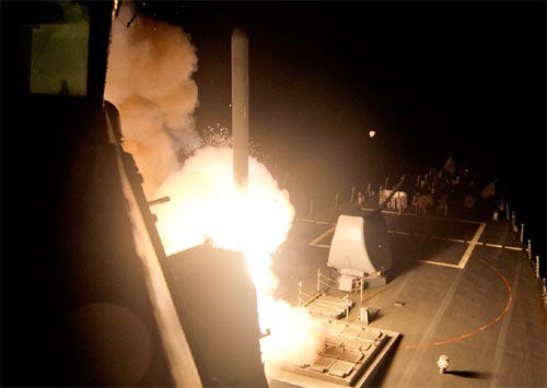| Крылатая ракета «Томагавк» запускается с борта эсминца «Арли Бёрк». Фото: Reuters/US Navy |