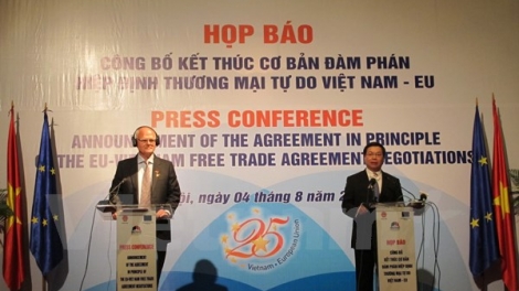 (VOVworld) – По прошествии трёх лет, за которые прошли 14 раундов официальных перговоров и ряд промежуточных переговоров, 4 августа Вьетнам и Европейский Союз (ЕС) объявили об официальном завершении переговоров по Соглашению о зоне свободной торговли (ЗСТ). Это открывает новые перспективы равзития сотрудничества между Вьетнамом и ЕС.