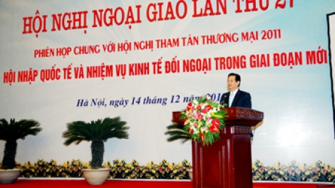 (VOV World) - Активизация дипломатии в интересах развития экономики является одной из 5 главных задач, стоящих перед Вьетнамом во внешнеполитической деятельности в 2012 году, а также в новый период. Как предполагается, в первом квартале 2012 года внешнеполитическое ведомство Вьетнама завершит разработку комплексной стратегии международной экономической интеграции,