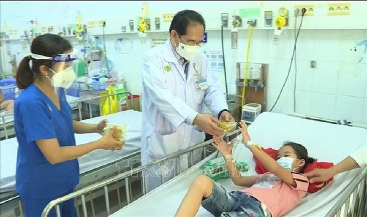 ![]() Дети упаковывают лунные пряники в коробку и относят их в больницу. Фото: VNA |
