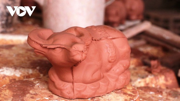 После обжига эти глиняные «буйволы» обычно продают в городах Ту Дау Мот и Тхуанан ремесленникам, которые затем раскрашивают их в золотой цвет на заключительном этапе. |