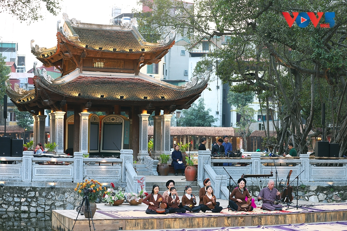 [VOVWORLD] - Пространство Хован (Литературное Озеро), входящее в мемориальный комплекс особого национального значения «Храм литературы Ванмиеу – Куоктызям» в Ханое, оживает каждое послеобеденное воскресенье благодаря представлениям традиционного искусства.