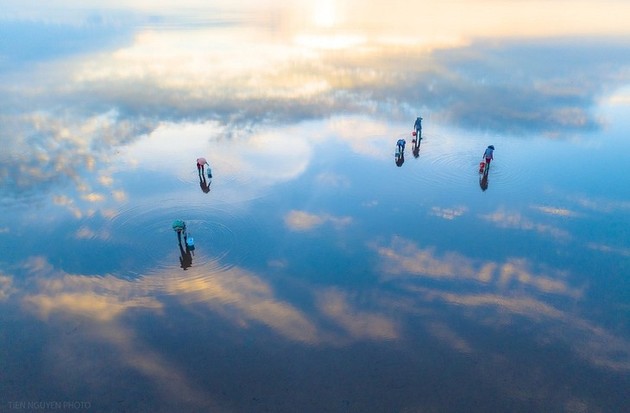 Морская поверхность отражает голубое небо, создавая поэтичный и впечатляющий пейзаж (Фото: Тьен Мау)