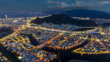 Ночная красота прибрежного города Куинён в провинции Зялай