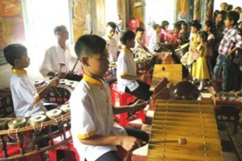 (VOVworld) - Осваивая целины в дельте реки Меконг, кхмеры продолжают развивать унаследованную Ангкорскую культуру и цивилизацию поливного риса. Они также находятся под влиянием традиций и обычаев народности Хоа и Тям. Вот почему их культура очень своеобразна. Кхмеры имеют богатую сокровищницу музыкальных инструментов. В частности, набор музыкальных инструментов Фленг Пинпеат ярко отражает культурные особенности народности Кхмер в южной части Вьетнама.