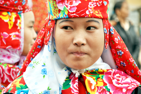 | Девушка группы Зяо с окрашенными побритыми головами. Источник: quangninh.gov.vn |