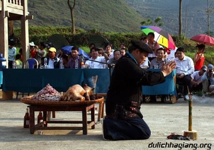 Продолжая торжественную часть, шаман в сопровождении 4 помощников выражает благодарность 4 духам, правящим 4 сторонами света за их покровительство в прошлом году, а также обращается к ним с просьбой принять подношения, продолжить защищать членов селения и приносить хороший урожай. Обряд вызова дождя является праздником не только представителей народности Лоло, но и других братских народностей, которые проживают в провинции Хазянг, таких как Монг, Таи, Зяй… Это предоставляет им возможность встречаться и общаться друг с другом, обсуждать деловые и семейные вопросы, в том числе проведение свадеб для молодых людей. Кан Тхи Ки, представительница селения Сунг Па А городка Меовак сказала: «Каждая семья селения добровольно жертвует средства на проведение обряда вызова дождя. Также представители других народностей, проживающие на территории провинции Хазянг, вносят вклад в подготовку к данному обряду. Местные жители передают из поколения в поколение обряд вызова дождя, желая, чтобы молодые люди больше узнали о культурной традиции своей народности. Накануне обряда мы повторяем народные песни и танцы для исполнения на празднике, а также учим им молодежь».