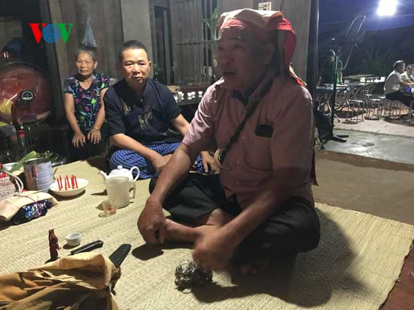 Во время ритуала женщина «Тхен» непрерывно поёт, чтобы выгнать зло, избавить от неприятностей и болезней, вымести безденежье из дома. В то время члены семьи поминутно сжигают ритуальные деньги, считая, что таким образом их просьбы будут донесены до высших сил. В чашку риса кладут персиковые листья, которые, по представлению местных жителей, помогают прогнать злых духов. Если представители многих народностей Вьетнама прогоняют злых духов путём прыжков через огонь, то представители народности Нунг сминают персиковые листья в ладонях. После исполнения молитвенных песен женщина «Тхен» выбрасывает рисовые зёрна из дома и во двор, чтобы избавить всех присутствующих от неприятностей и одновременно просит высшие силы принять молитву и покровительствовать главному герою церемонии. Ви Вьет Зунг, исследователь культуры народностей Таи и Нунг сказал: «Считается, что повитухи управляют душой человека, поэтому на ритуал празднования дня рождения дедушек, бабушек или родителей семья приглашает женщину «Тхен», в которую вселяются повитухи».