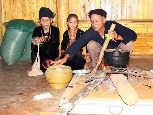 Уже в течение сотен лет огонь является неотъемлемым предметом повседневной жизни народности Кхму. Горящие очаги в домах на сваях делают атмосферу в посёлках этой народности Кхму более уютной. Неизвестно, когда представители народности научились разводить огонь примитивным способом, т. е. с помощью бамбуковых палочек. По традиции, с детства юноши народности Кхму учатся разжигать огонь этим своеобразным способом. Они используют бамбуковую дощечку, в которой вырезается небольшое углубление и вставляется бамбуковый стержень, который создаёт давление между ним и дощечкой в непосредственной близости раскладывают сухую траву и начинают быстрыми движениями ладоней вращать бамбуковый стержень. По опыту местных жителей, чем старее бамбук, тем он легче воспламеняется. Сила трения создаст необходимое количество энергии для воспламенения. Говорит Ме Ван Тхат, представитель народности Кхму: «Этот способ разведения огня давно стал традицией народности Кхму. Неизвестно, кто его придумал, однако с давних времён наши предки уже умели разжигать костёр данным способом».