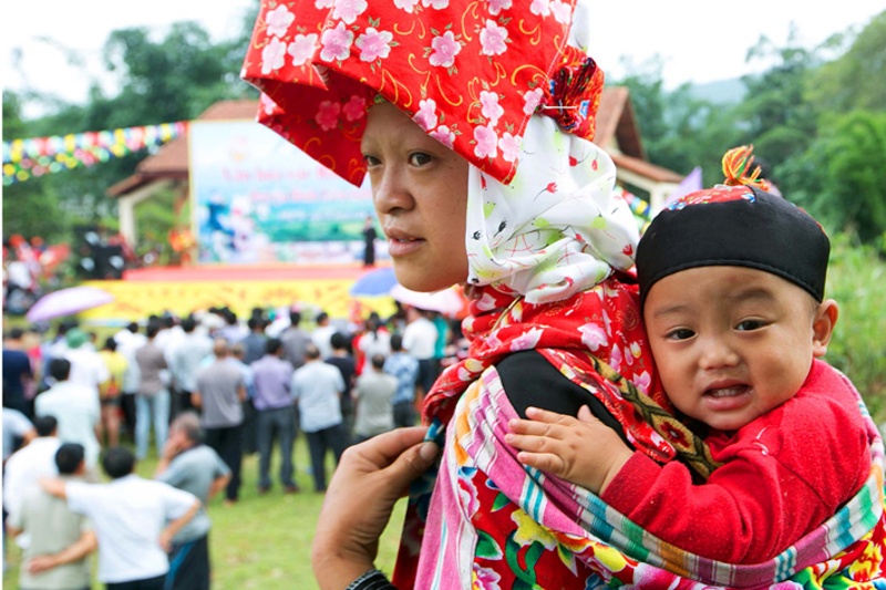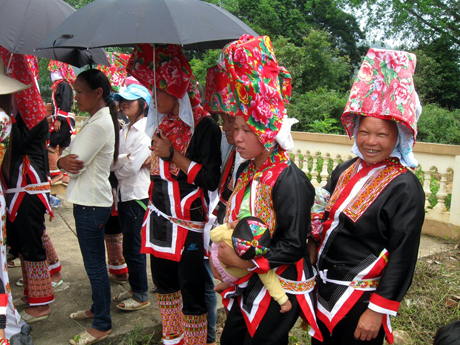 Во время праздника «Киенгзо» в разных уголках базара Биньлиеу… всюду слышны приятные голоса девушек народности Зао. Их красные кофты особенно заметны на фоне синего неба и зеленого леса.