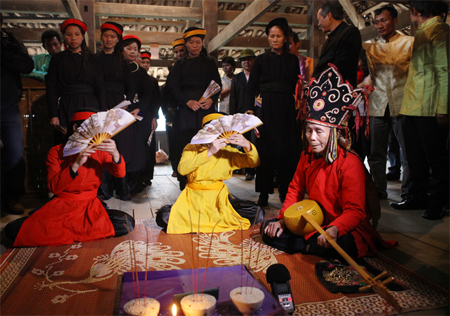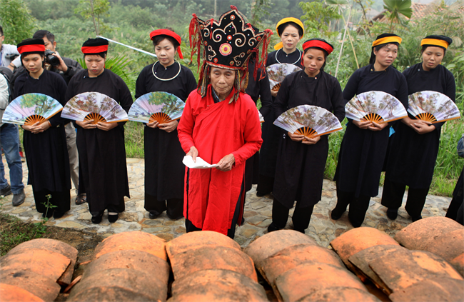 В начале обряда шаман читает молитву, после этого две девушки сидя крутят веера и запевают, приглашая мать Луны на землю. Доктор наук Нгуен Тхи Иен из исследовательского института народной культуры, объяснила: «Праздник Нангхай похож на праздник Лонгтонг, однако праздник Нангхай проводится шаманом. Считается, что духи 12 фей входят в 12 девушек. Они начинают петь и взлетают на небо к матери Луны, обращаясь к ней с просьбой покровительствовать жителям селения, принести им счастье и благополучие. Всё это отражается в песнях».