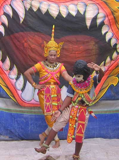 В спектаклях Робам каждый герой показывает движения руками и ногами в соответствии с определенными правилами. По статистическим данным, среди кхмеров популярны 33 сценическихтанца Робам, в том числе 8 основных комбинаций движений рук. Для мифического животного Иеак существуют 12 разных танцев икаждый из них имеет свое значение. Танцевальные спектакли Робам подверглись влиянию индийской культуры, поэтому в них встречаются разные виды масок, таких как: маска для мифического животного Иеак, маска для короля-обезьяны Ханумана, маска для коня Манони, маски для священной птицы Корик, феникса, черепахи, змеи... Выразительные маски, ярко отражающие характеры героев, вызывают большой интерес у зрителей.