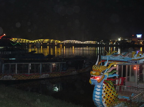Старинные песни «Ка Хюэ» – изысканное наслаждение, которое предпочитают все туристы, понимающие культуру Хюэ. Наступает ночь, зажигаются фонари, мост Чыонг Тиен блестит под лунным цветом – драконьи лодки покидают причалы и начинают плыть против течения. Моторные лодки останавливаются посередине реки – они потихонько двигаются по течению. На палубе красиво одетые 5 артистов и 3 музыканта приветствуют зрителей: шоу начинается!
