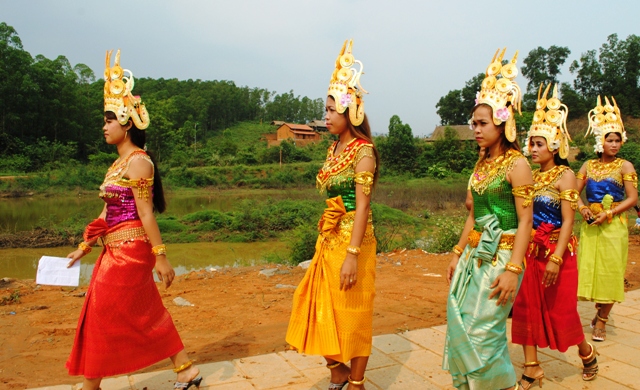 Затейливая и многоцветная женская одежда народности Кхмер всегда привлекает к себе большое внимание, поскольку она украшается сияющими бусинками. Несмотря на трудные экономические условия, каждая кхмерская женщина шьёт себе и своим родным традиционные наряды для важных событий, что способствует сохранению традиционной культуры народности Кхмер.