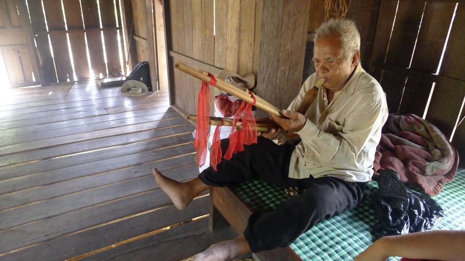 Господин Ой Блу помолчал и начал исполнять нам в подарок мелодию народности Эдэ на духовом инструменте «динь-нам».