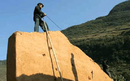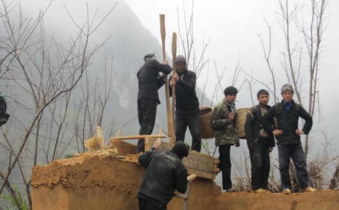 Фундамент земляного дома делается из камня. У подножья стен камни свалены кучами высотой в полметра во избежание оседания дома. «Для возведения стен используется глина, потому что стены из неё имеют гладкую и прочную поверхность. Смесь глины с камнями способствует увеличению прочности стен. Вот почему здешним домам уже сотни лет».