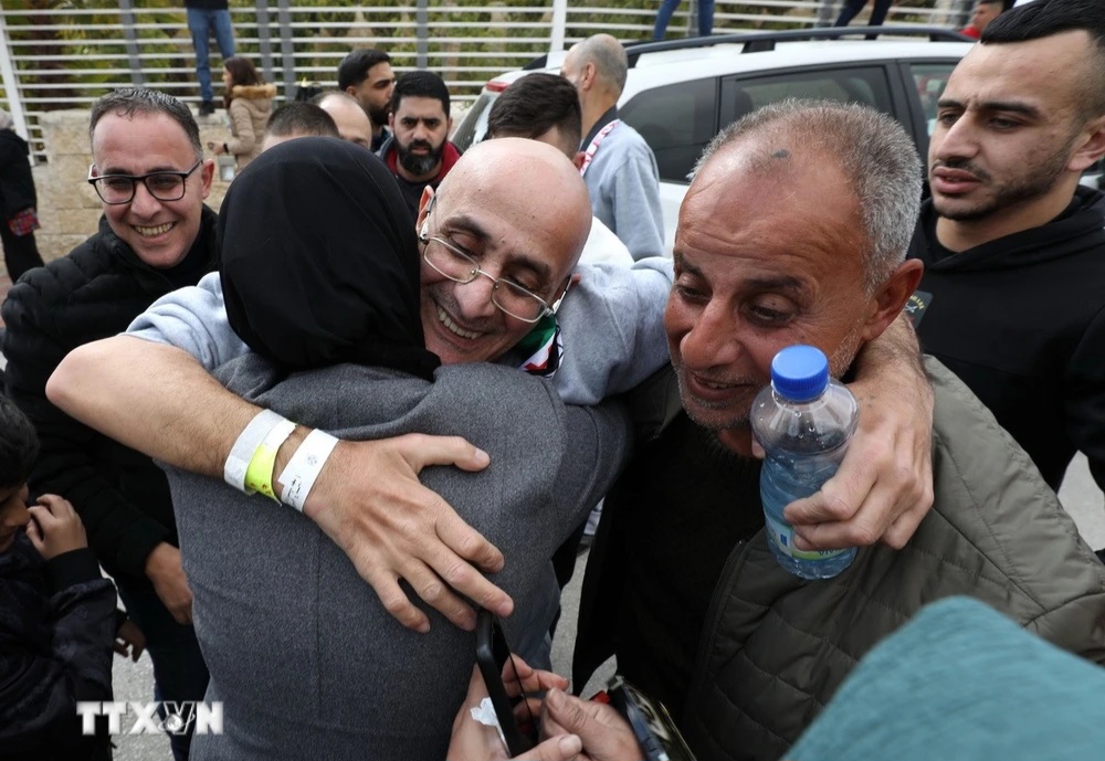 Палестинские заключенные, освобожденные Израилем, воссоединяются с родственниками в городе Рамаллах на Западном берегу реки Иордан 1 февраля 2025 года. Фото: ВИА |
