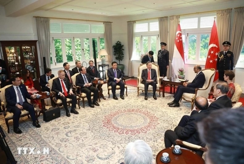 На встрече президент Сингапура подчеркнул, что повышение Вьетнамом и Сингапуром уровня двусторонних отношений до всеобъемлющего стратегического партнерства открывает новую главу в двусторонних отношениях. Президент Тарман Шанмугаратнам выразил уверенность в том, что Вьетнам сохранит свои позиции одной из самых динамичных экономик в регионе, а его международное положение будет постоянно улучшаться.
