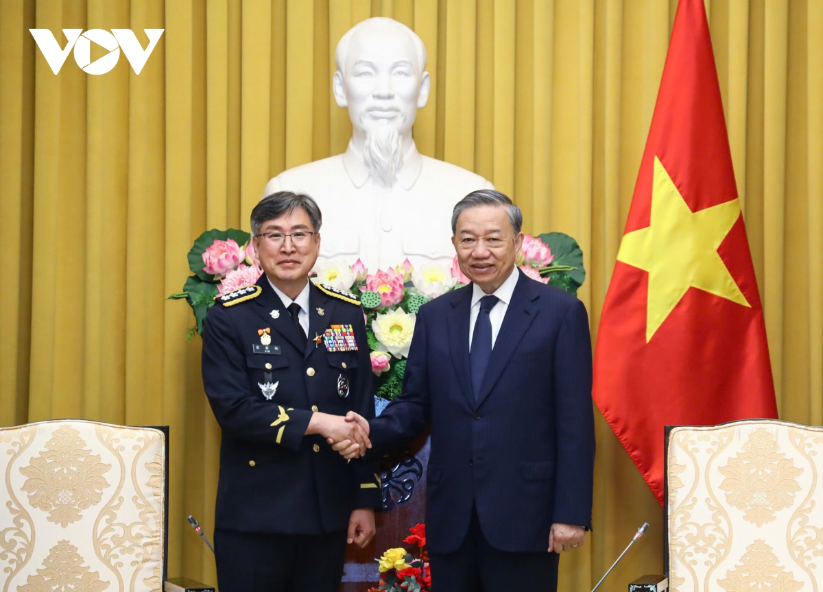 Вьетнамский лидер призвал Министерство общественной безопасности (МОБ) Вьетнама и Береговую охрану Республики Корея осуществлять регулярные обмены делегациями, форсировать конкретные планы сотрудничества в целях углубления и повышения эффективности взаимодействия между двумя сторонами. Генсек ЦК КПВ, президент То Лам также предложил южнокорейской стороне оказывать Вьетнаму поддержку в наращивании потенциала водной полиции МОБ в операциях на реках и морях.