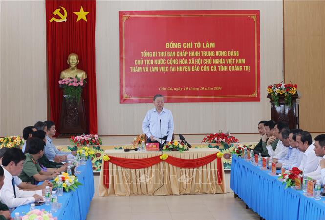 Глава КПВ и Государства предложил островному уезду продолжить укреплять безопасность и оборону на море и островах с акцентом на поддержание тесных связей с другими островами. То Лам подчеркнул необходимость улучшения материальной и духовной жизни солдат и жителей на островах, повышения качества обучения и ухода за жизнью местного населения. Также необходимо устойчиво развивать туризм в направлении охраны окружающей среды и природных пейзажей. Пользуясь случаем, высший руководитель страны возложил венок и воскурил благовония в Мемориальном доме президента Хо Ши Мина и у Памятника павшим фронтовикам на острове Конко, а также вручил подарки местным семьям и солдатам, передал в дар уезду медицинское оборудование.
