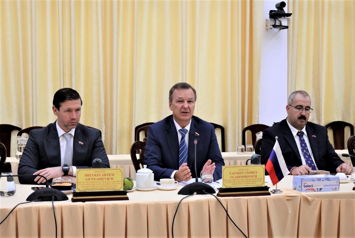 Первый заместитель председателя Совета Федерации Федерального собрания РФ Андрей Яцкин (в середине). Фото: daibieunhandan.vn |