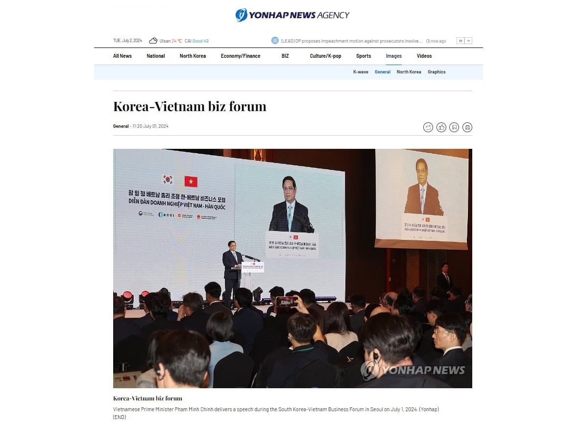 Проинформировав о вышеупомянутом форуме, газета Hankuk Kyongjae отметила решение корейских и вьетнамских политиков и деловых лидеров расширить торгово-инвестиционное сотрудничество в таких областях, как цифровая трансформация и цепочка поставок.