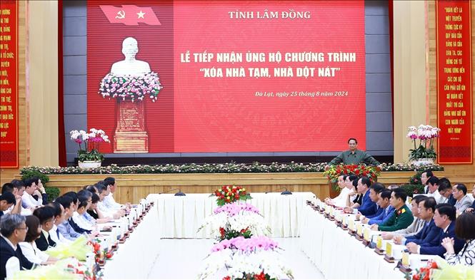 В рамках рабочей поездки в провинцию Ламдоннг 25 августа в городе Далат премьер-министр Фам Минь Тинь - председатель Центрального совета по вопросам соревнований и награждения принял участие в церемонии приёма средств от благотворителей в поддержку программы ликвидации временного и ветхого жилья в этой провинции.