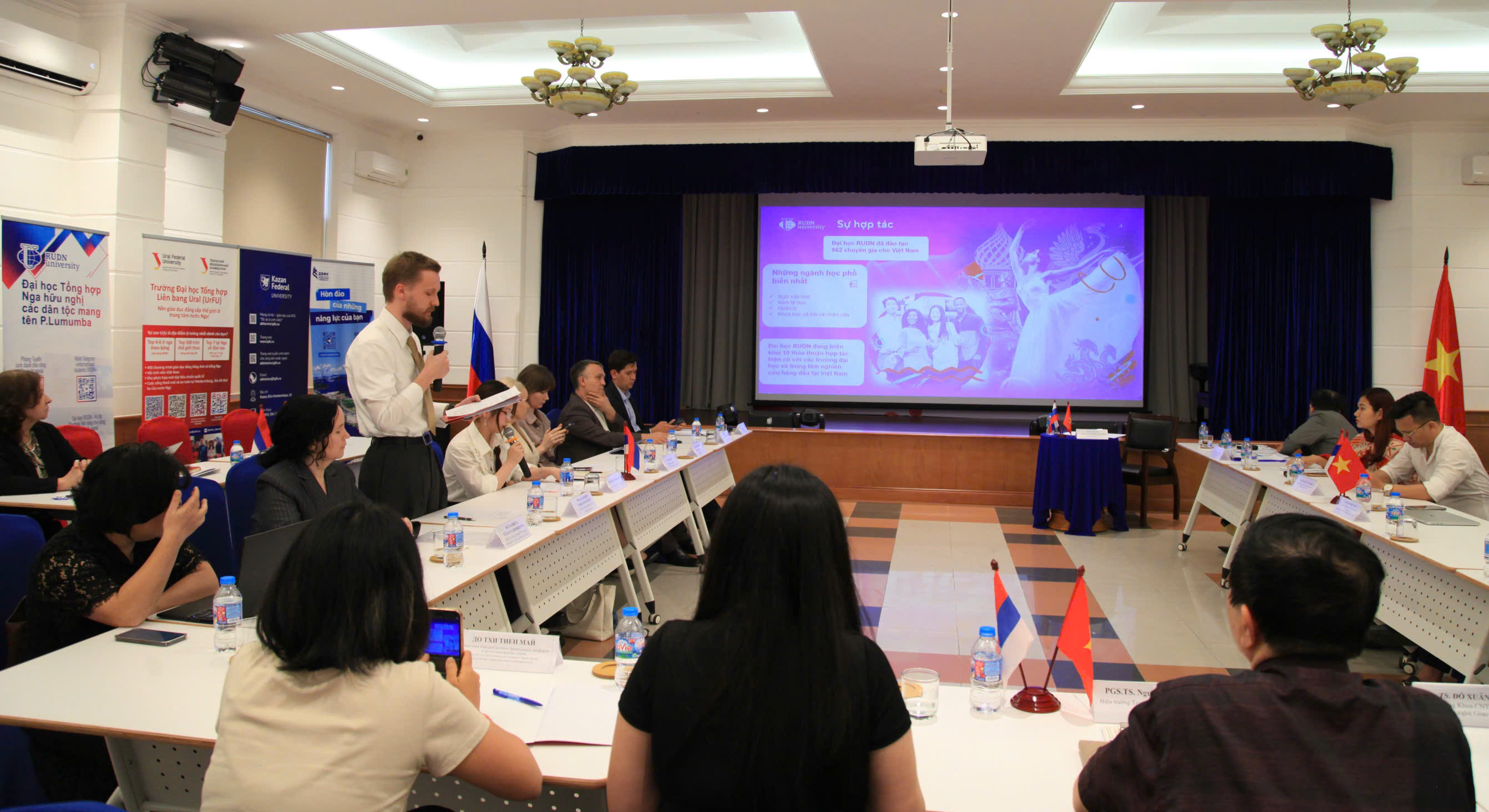 Марк Агафошин, ведущий специалист отдела стран Азии Департамента по рекрутингу и сопровождения иностранных обучающихся РУДН продвинул инициативы по расширению межвузовского сотрудничества: «Во-первых, расширение программы двойных дипломов и совместного научного руководства, в том числе в области экологии и медицины. Во-вторых, реализация совместных научно-образовательных проектов, включая школы для студентов и аспирантов. В-третьих, расширение академической мобильности студентов и преподавателей. И, открытие профильных классов по изучению русского языка во вьетнамских школах и вузах».
