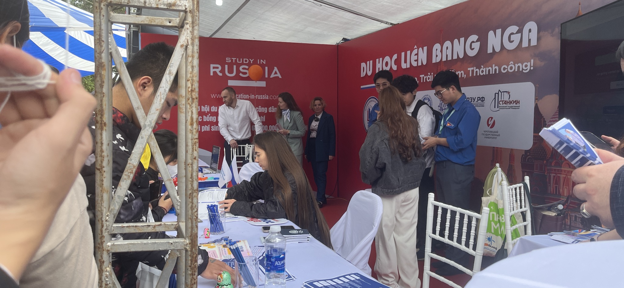 Стенд «Обучение в России» представили 8 российских вузов. Среди них были университеты Москвы, Санкт-Петербурга, Казани, Кубани, Твери и других регионов. В течение мероприятия представители вузов рассказывали о сильных учебных программах, государственных стипендиях и жизни иностранных студентов в России. Вьетнамские школьники активно участвовали в викторинах о России и задавали вопросы о процессе подачи документов на обучение в российских вузах.