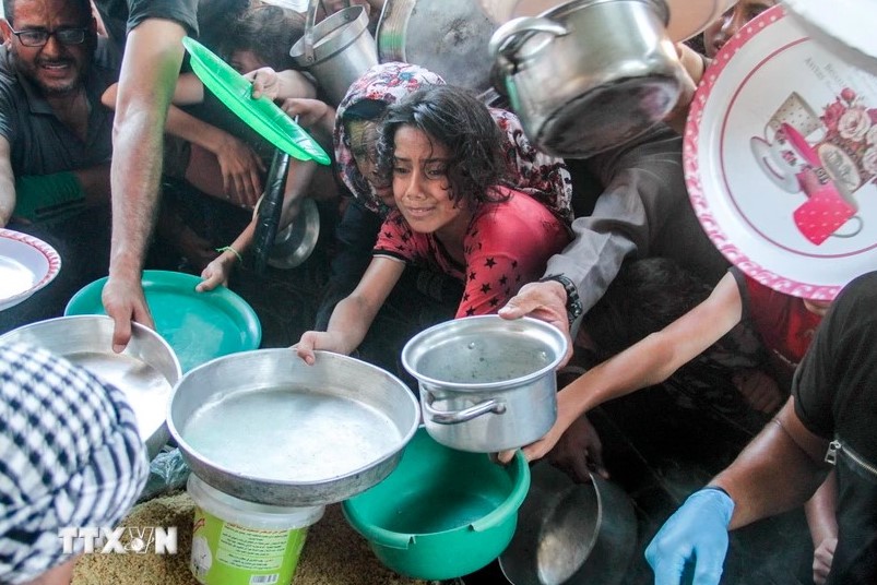 Палестинцы собираются за продуктами питания в Бейт-Лахии на севере сектора Газа. Фото: VNA |