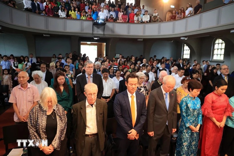 Участники минутой молчания почтили память генсека ЦК КПВ Нгуен Фу Чонга. Фото: VNA |