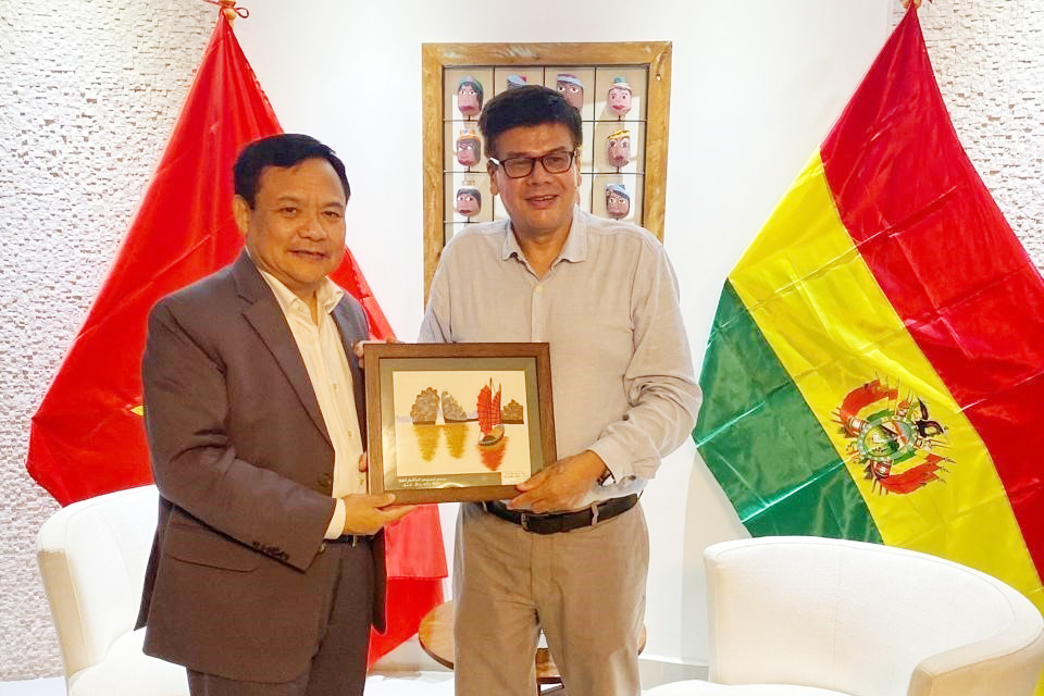 Посол Буй Ван Нги (слева) и почетный консул Вьетнама в Боливии Мигель Анхель Перес Пенья. Фото: VNA |
