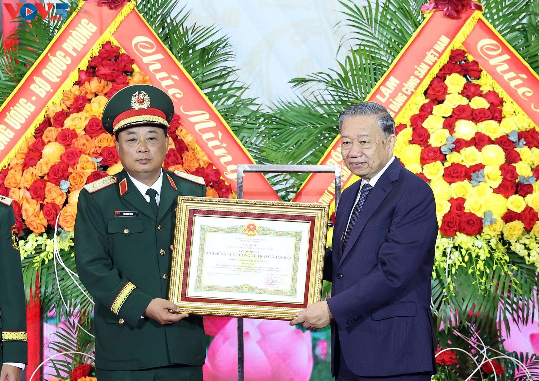 От имени руководства Партии и Государства Генеральный секретарь ЦК КПВ То Лам вручил Главному управлению оборонной промышленности звание Героя народных вооружённых сил.