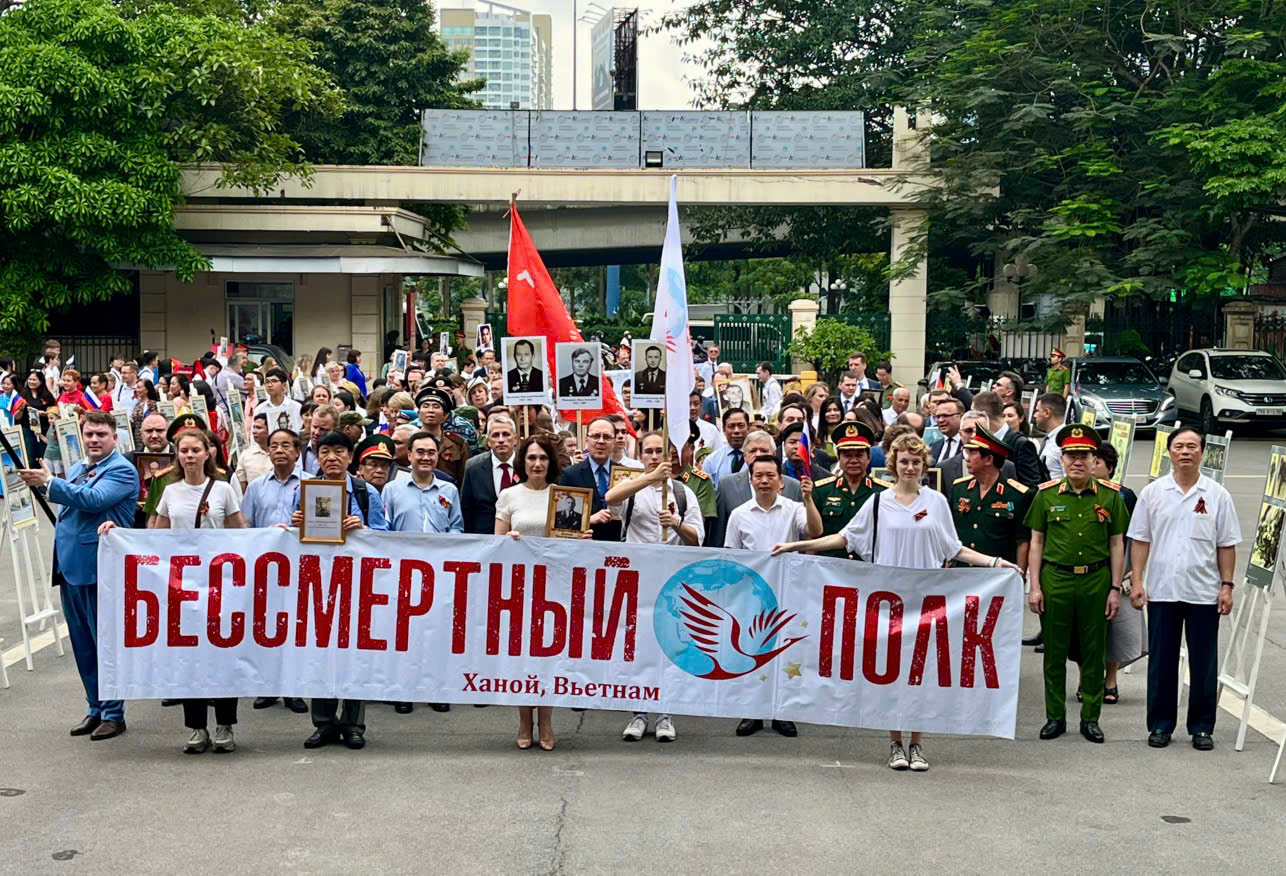 6 мая в Ханое состоялась акция «Бессмертный полк». Организаторами мероприятия выступили Посольство РФ во Вьетнаме, Российский центр науки и культуры и Университет пожарной безопасности Министерства общественной безопасности СРВ. Событие было посвящено 80-летию Победы в Великой Отечественной войне (9 мая), 50-летию освобождения Южного Вьетнама и объединения страны (30 апреля), а также 71-й годовщине Победы при Дьенбьенфу (7 мая).
