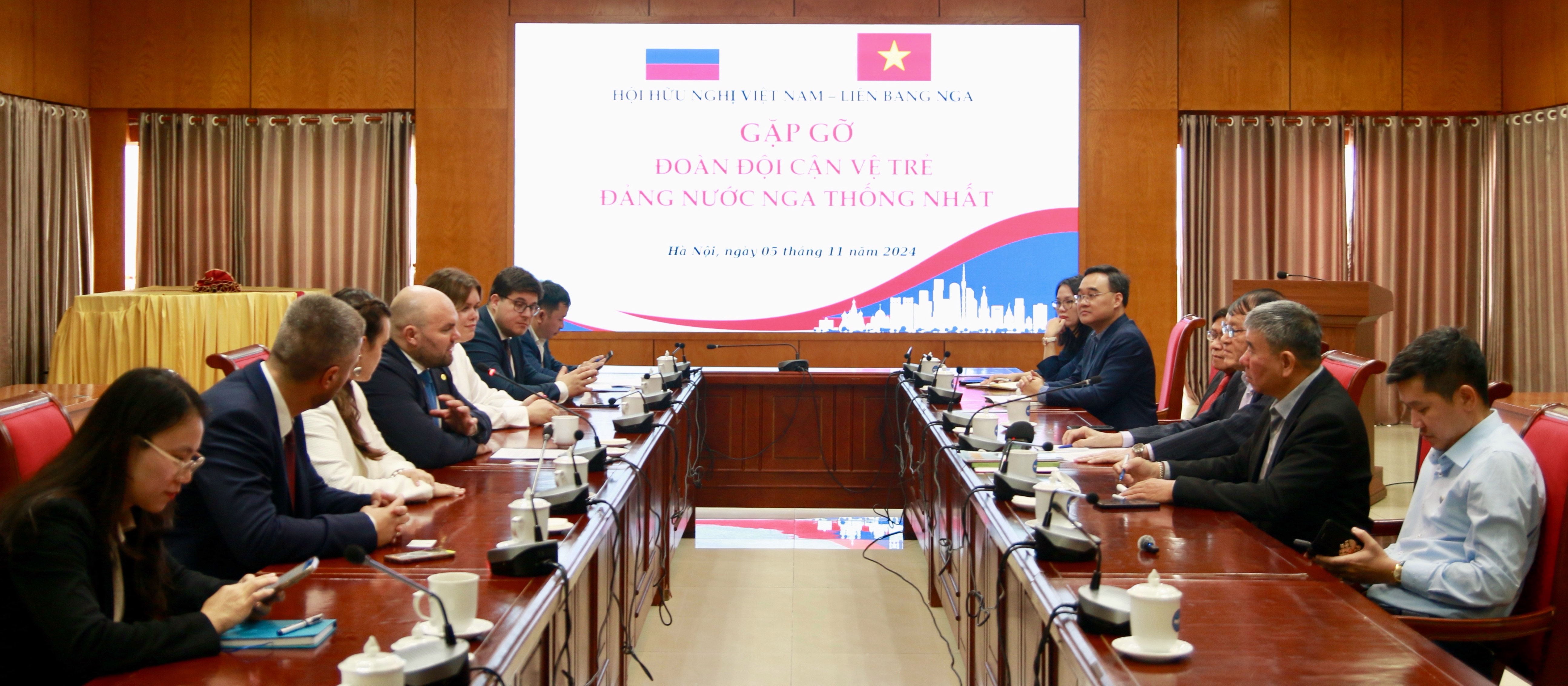 5 октября в Ханое состоялась встреча правления Общества вьетнамско-российской дружбы (ОВРД) с рабочей делегацией «Молодой гвардии партии «Единая Россия» во главе с председателем Антоном Демидовым.