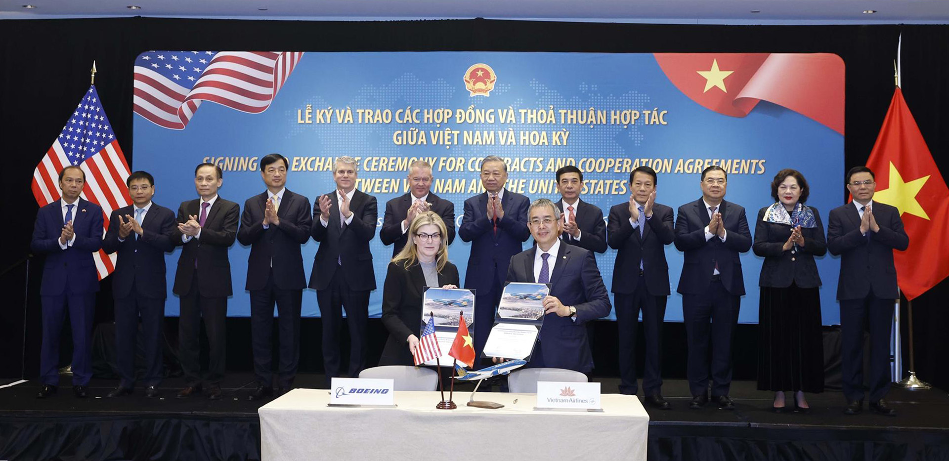 Вечером 18 февраля по местному времени в Вашингтоне вьетнамские и американские партнеры подписали и обменялись контрактами и соглашениями о сотрудничестве в ключевых областях на общую сумму 37,2 млрд долларов. На мероприятии присутствовал генеральный секретарь ЦК КПВ То Лам и высокопоставленные руководители двух стран.