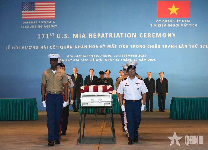 Церемония репатриации останков одного погибшего во время войны во Вьетнаме американского военнослужащего состоялась 13 декабря в ханойском аэропорту Зялам.