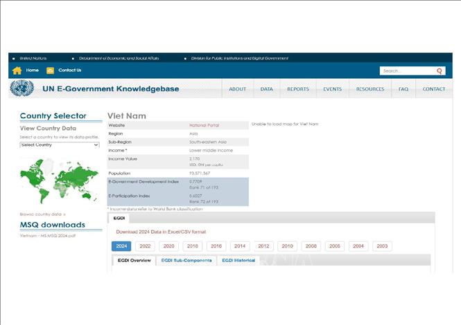 ООН подтвердила, что вступление таких стран, как Вьетнам, в группу стран с очень высоким индексом развития электронного правительства, отражает успех в укреплении цифровой инфраструктуры, расширении подключения к Интернету и применении надежных систем электронного правительства. ООН высоко оценила значительные инвестиции Вьетнама в развитие системы предоставления госуслуг в онлайн-формате, выразив уверенность в том, что Вьетнам сможет ускорить развитие цифровой техники путём улучшения качества предоставления онлайн-госуслуг и развития человеческих ресурсов.
