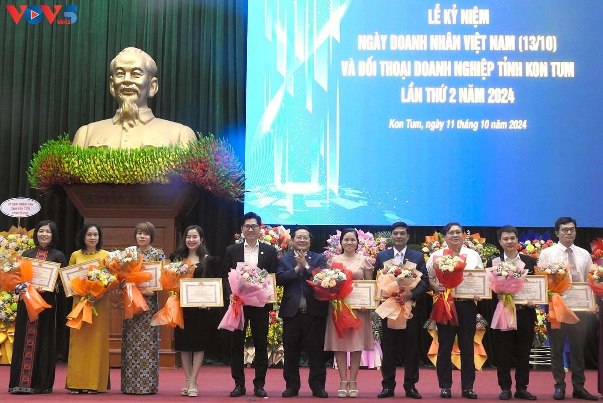 Во второй половине того же дня в городе Комтум народный комитет провинции Контум организовал церемонию празднования 20-й годовщины Дня вьетнамского предпринимателя и 2-й бизнес-диалог 2024 года. Выступая на данном мероприятии, председатель Народного комитета провинции Контум Ле Нгок Тукан подтвердил: «Предприятия, предприниматели и инвесторы продолжают поддерживать дух ответственности и солидарности в бизнес-сообществе, активно преодолевая трудности и ища рынки потребления продукции, а также продолжают применять передовые достижения науки и технологии и нанимать талантливых людей для разработки и улучшения качества продукции, способствуя созданию имиджа успешного бизнесмена с предпринимательской и деловой культурой, активно участвующего в мероприятиях по социальному обеспечению».