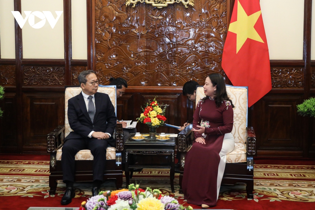 На встрече с японским послом временно исполняющая обязанности президента Во Тхи Ань Суан высоко оценила добрые чувства дипломата к Вьетнаму и его большой вклад в развитие многогранного сотрудничества между Вьетнамом и Японией, в частности поднятие двусторонних отношений на уровень “Всеобъемлющего стратегического партнёрства ради мира и процветания в Азии и во всем мире”, проведение различных мероприятий в честь 50-летия установления дипотношений между двумя странами.