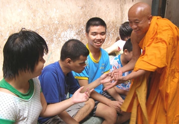 Монах Тить Тхиен Тьеу встречается с детьми-калеками. Фото: Tran Ngoc