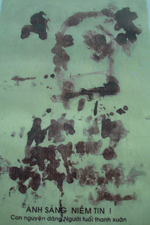 | Картина о президенте Хо Ши Мине, написанная художником Ле Зюй Ынгом своей кровью. Фото: DC |