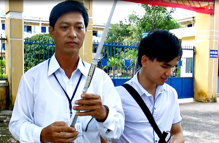 Прошло более месяца с того момента, когда учитель Нгуен Зуи Куи подарил усовершенствованную трость для слепых учителю специализированной школы имени Нгуен Динь Чиеу Хоанг Ван Кхыонгу. Теперь он может самостоятельно добраться из дома в школу. Как сказал учитель Хоанг Ван Кхыонг, до этого момента в передвижении ему приходилось прибегать к помощи других. А теперь с усовершенствованной тростью, к которой были прикреплены светодиод и сирена, учитель Кхыонг вполне может уверенно выходить на улицу: «Раньше, когда у меня не было такой трости, я сталкивался с многочисленными трудностями в передвижении. Чтобы перейтиь улицу, мне приходилось ждать, до тех пор, пока я не слышал никакого шума, либо просить помощи прохожих. С этой тростью я стал уверенным. Это-своего рода моя спутница».